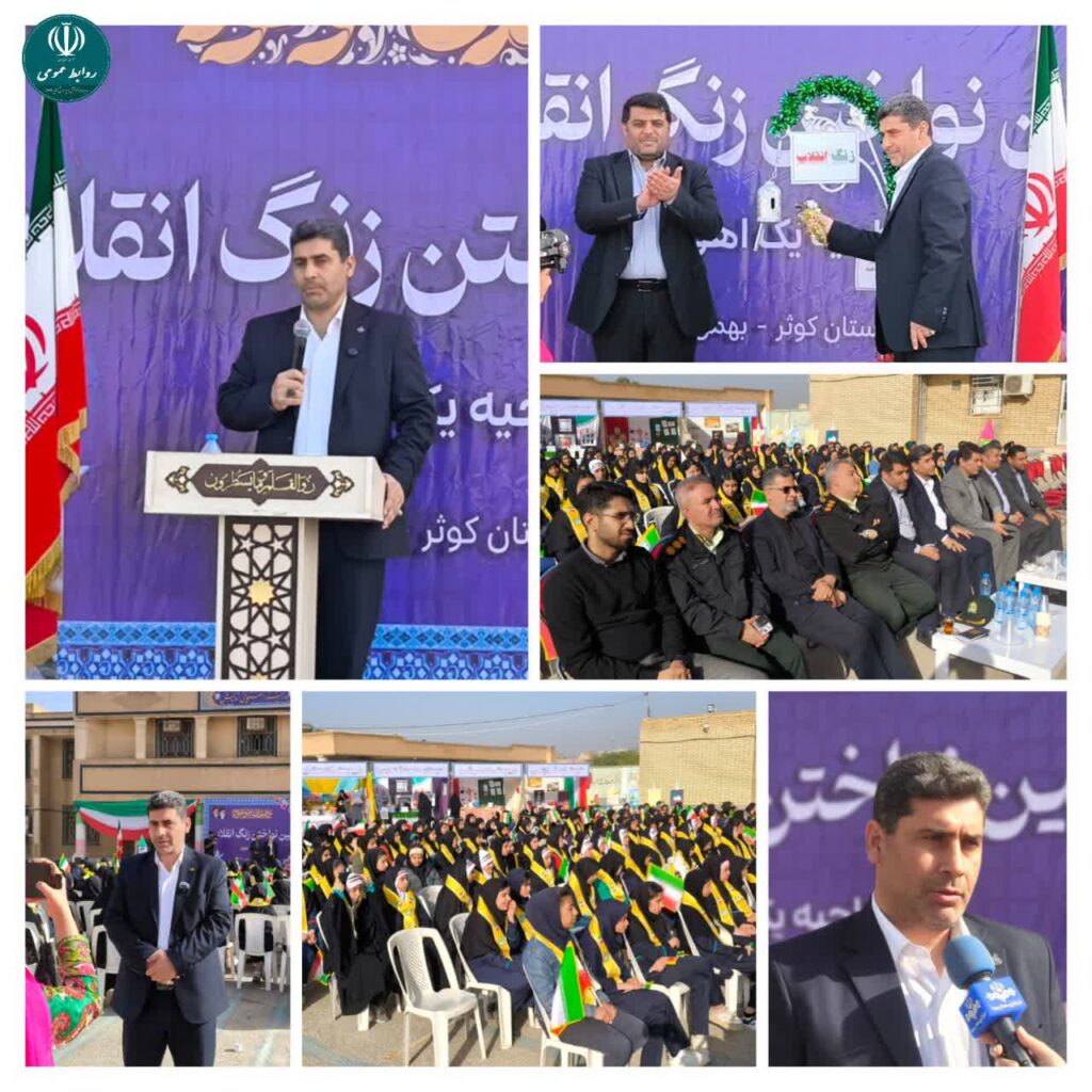 آیین نواختن زنگ آغاز دهه مبارک فجر شنبه ۱۲ بهمنماه با حضور مسئولان شهرستانی و جمعی از فرهنگیان و دانشآموزان در دبیرستان کوثر ناحیه یک اهواز برگزار شد.