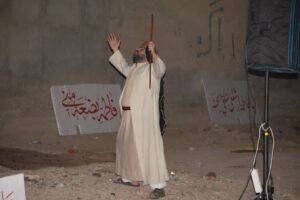 نمایش:از بیعت تاهجوم نویسنده وکارگردان:علی دسومی محل اجرای نمایش: اروند کنارآبادان خلاصه نمایش: چند صحنه ای از غدیر نشان می دهیم وبیعت کردن با امام علی ع تا بعد واقعه غدیر و سقیفه و هجوم به خانه فاطمه زهرا